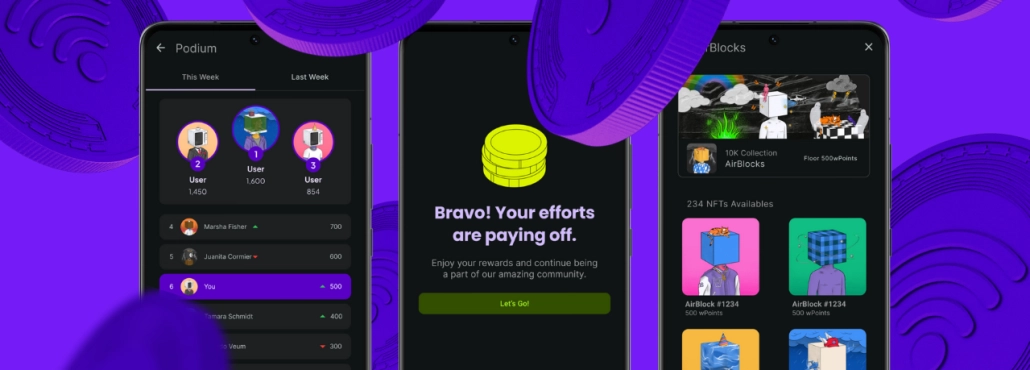 Collect Wayru Points by completing app activities and redeem them for tokens or NFTs.
